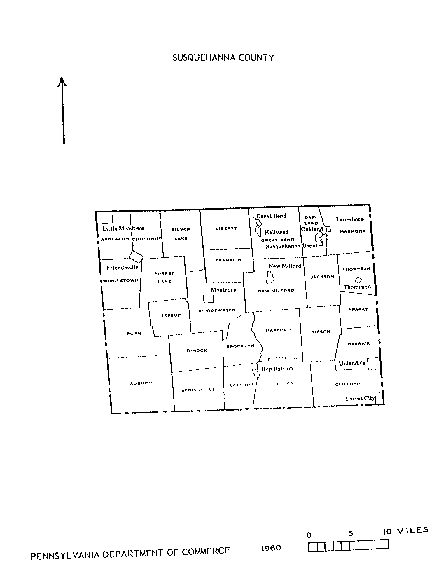 Welcome to the Susquehanna County GenWeb Project Home Page! This site started in 1996 as part of the PAGenWeb Project and the USGenWeb Volunteer Project. About Susquehanna County: The county was set off from Luzerne County on February 21, 1810, and gets its name from the Susquehanna River which flows through it. Back in 1810, the county contained 10 townships and around 3,500 residents. Today it has 27 townships and 13 boroughs, and the 2000 Census showed 42,238 residents. The Susquehanna County courthouse is at Montrose. One mile south of New Milford is Old Mill Village, a living museum dedicated to the area's rural heritage. Each August, there is a celebration of many of the enduring local qualities that make Susquehanna County a great place to live at the Harford Fair.